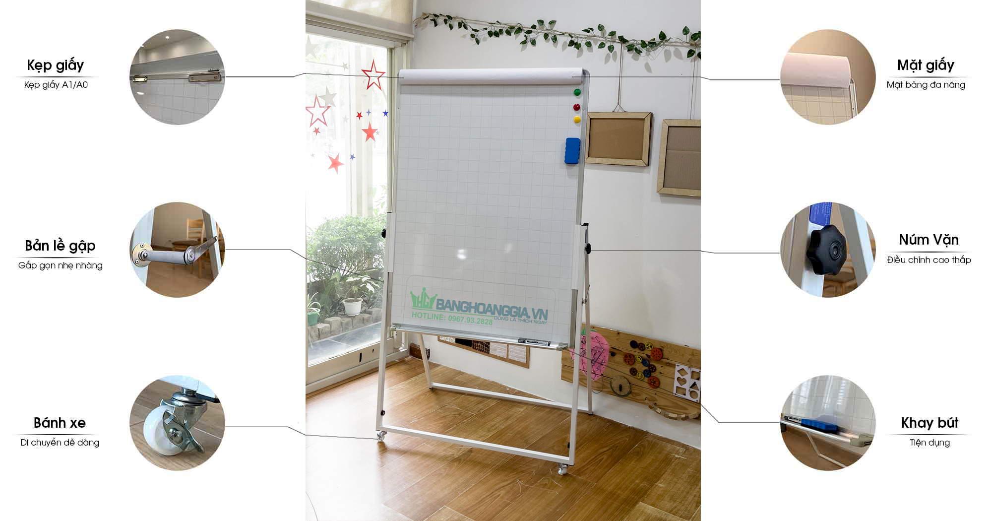 Bảng trượt lên xuống đơn giản chỉ bằng núm vặn dễ dàng dừng ở mọi vị trí sử dụng mong muốn.